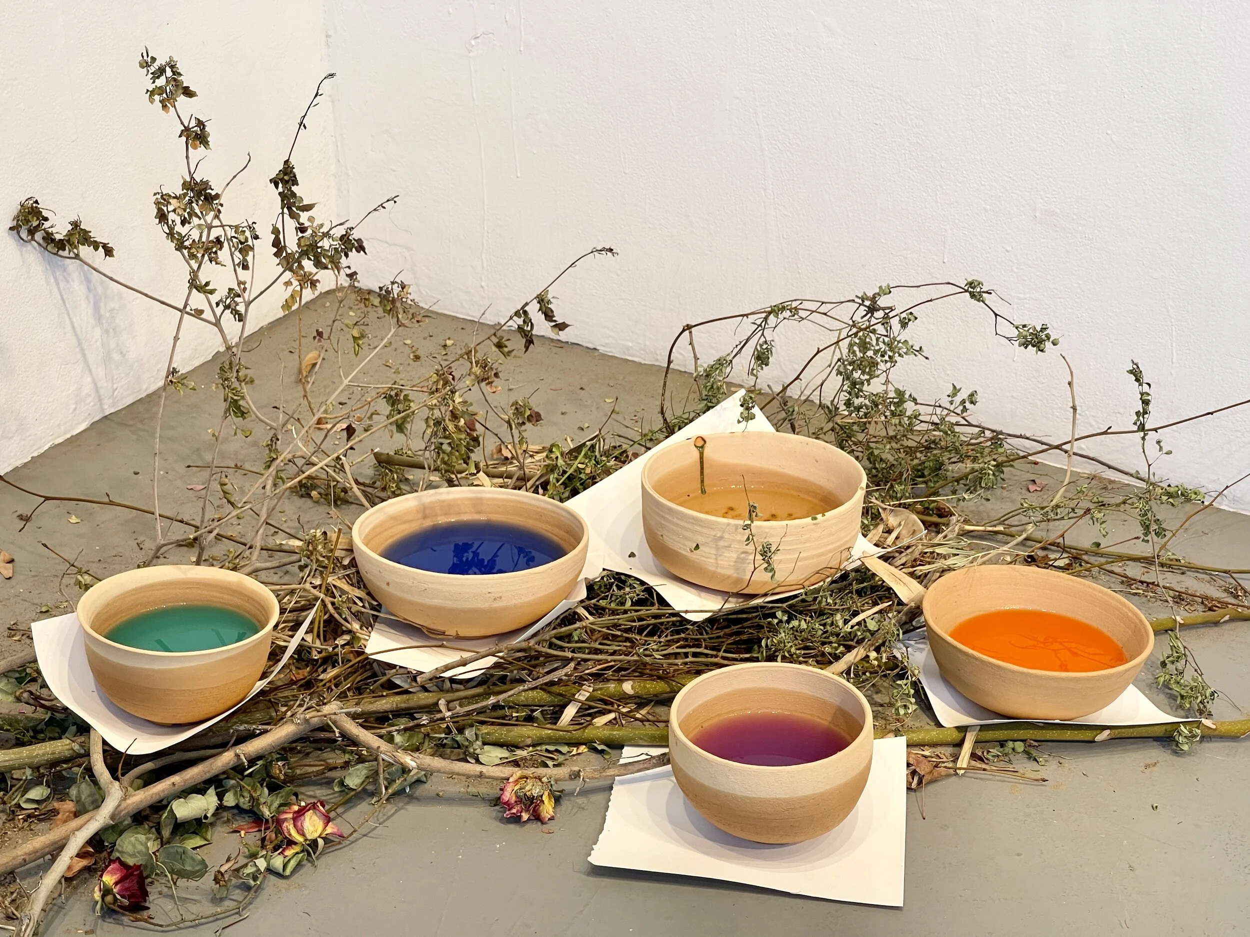 suspends an open, ceramic form that releases its contents through the rigid, sponge-like matrix, filtering impurities to water its roots.